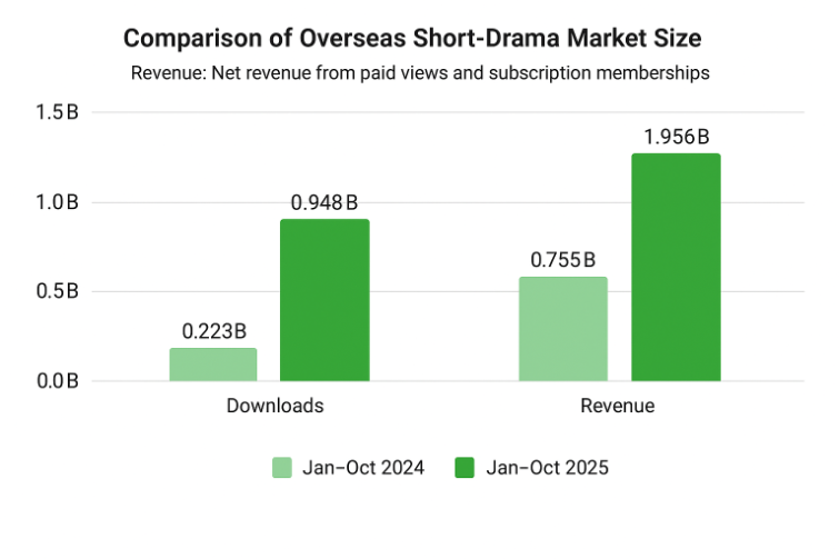 Capital and platforms are moving forward in tandem, backed by a rapidly growing market: as of October 2025, overseas micro-drama revenue and downloads have surged by 159% and 325% year-on-year, respectively, with the market size approaching $2 billion.