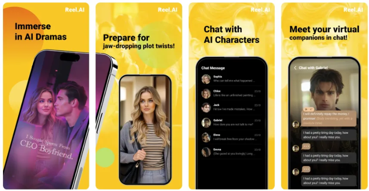 Represented by Reel.AI under Jingying Technology, the platform focuses on AI micro-dramas for female audiences. In addition to watching the dramas, viewers can also chat with AI characters outside the show. Its English micro-drama Five Brothers, entirely produced by AI, has appeared on several overseas charts.