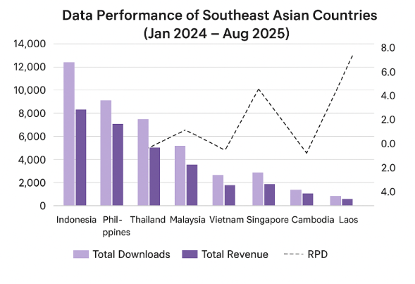 ● Thailand shows a stronger willingness to pay for quality content, making it a higher-value market despite lower download volumes.